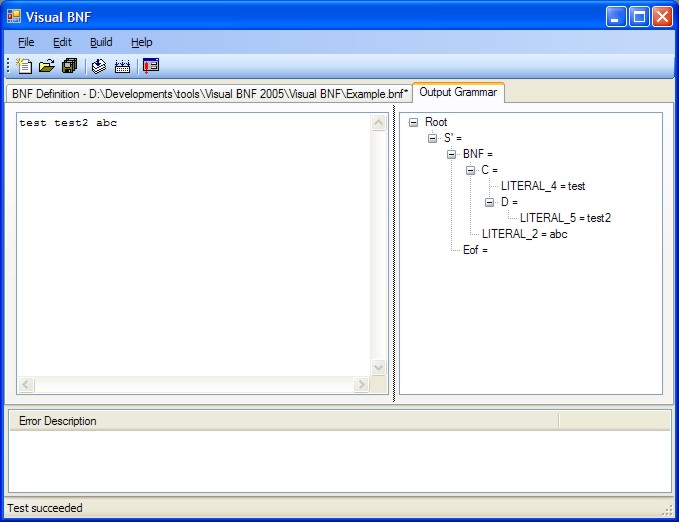 Visual BNF offers also testing of the new language specified in a BNF syntax to see how it works.  Syntax tree is also available there as new language is being parsed.